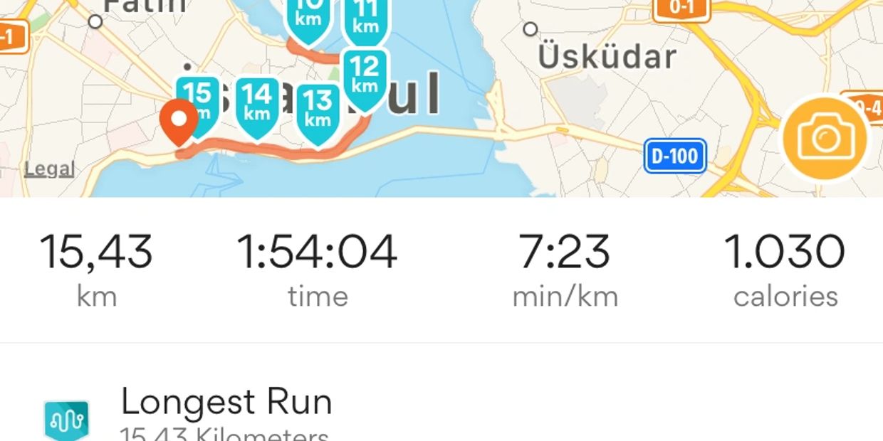 Ve başladım Altunizade'den 33 bin kişi ile birlikte 15 km. koşmaya. Kalbimin pıt edişi, yürümeye başladığımda bitirebilecek miyim telaşına dönüşünce, "Hep kızına söylediğini uygulama zamanı. Zevkini çıkar. Bunu yapabilirsin" diyerek ve ve Hume'un "Eğer burada durup daha ileri gidemeyeceksek, niçin bu noktaya kadar geldik!" sözünü hatırlayıp kendi kendimi telkin ederek köprünün ortasında fotoğraf çekip yoluma devam ettim. eskilerin deyimiyle şerbet gibi bir havada benim için hâlâ Boğaziçi Köprüsü olan köprünün üstünden Beşiktaş yokuşundan aşağı manzaranın keyfini çıkara çıkara tempolu yürüdüm. Hatta ara ara gaza gelip koştum. Dolmabahçe, eski okulum, Karaköy, Galata Köprüsü, Eminönü, Sirkeci, Topkapı Sarayı önünden Yenikapı'ya doğru keyifle hatta zaman zaman kendi kendime gülerek vardım. Bitiş noktasını geçtiğimde sanki atomu parçalamışım gibi bir kendimle gurur, bir mutluluk...